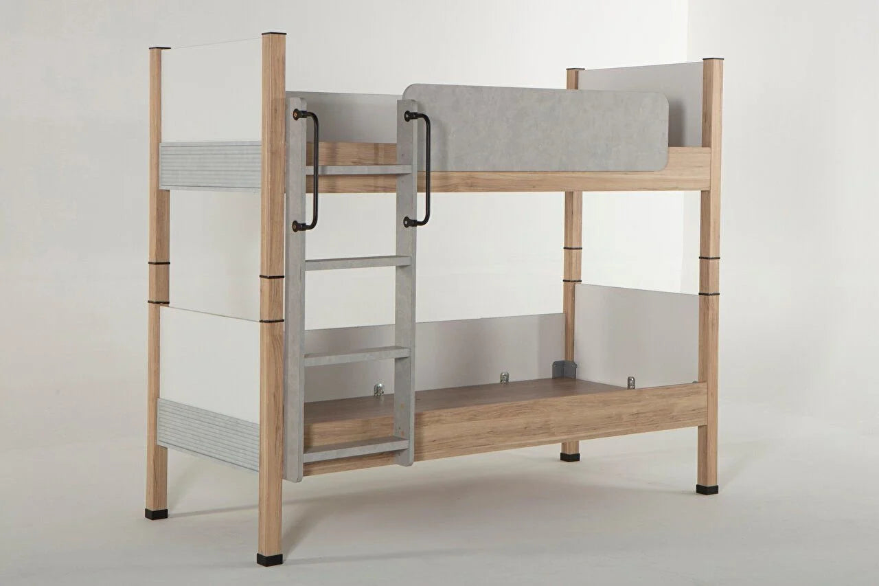 Lena Bunkbed, designed using natural-looking wood, white and gray, is resistant to scratching and friction as it is produced using materials in E1 standards. Istikbal UK takes care to use healthy ingredients. Therefore, you can use Istikbal UK branded furniture in your child's room with peace of mind. Care has been taken to use materials that do not contain carcinogenic substances in the production of furniture. Lena Bunkbed helps to make the room look spacious thanks to the colors used in its design.