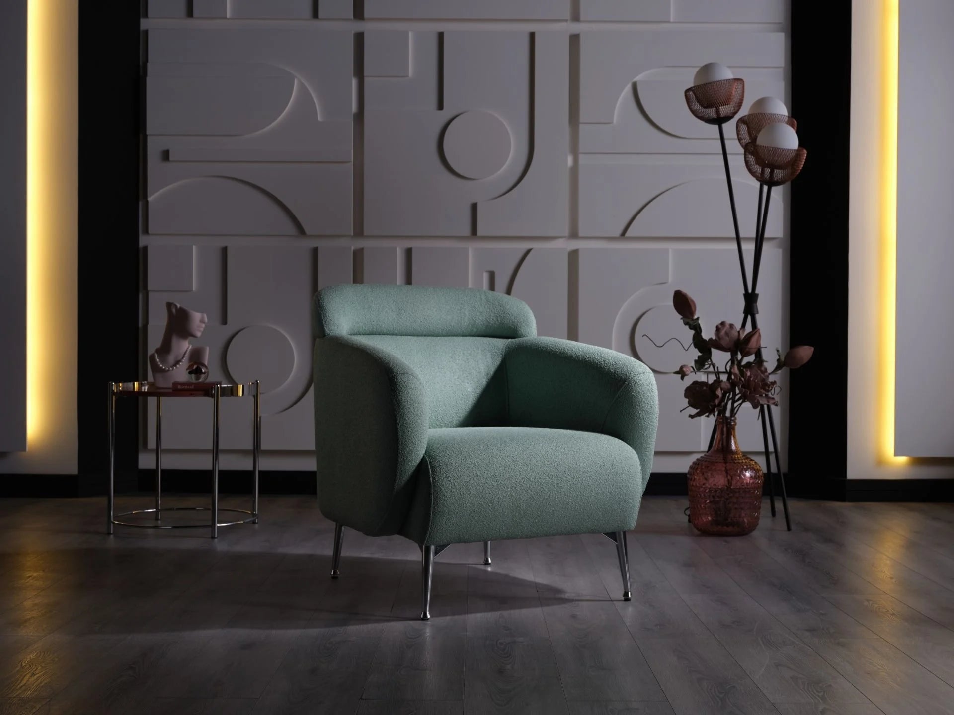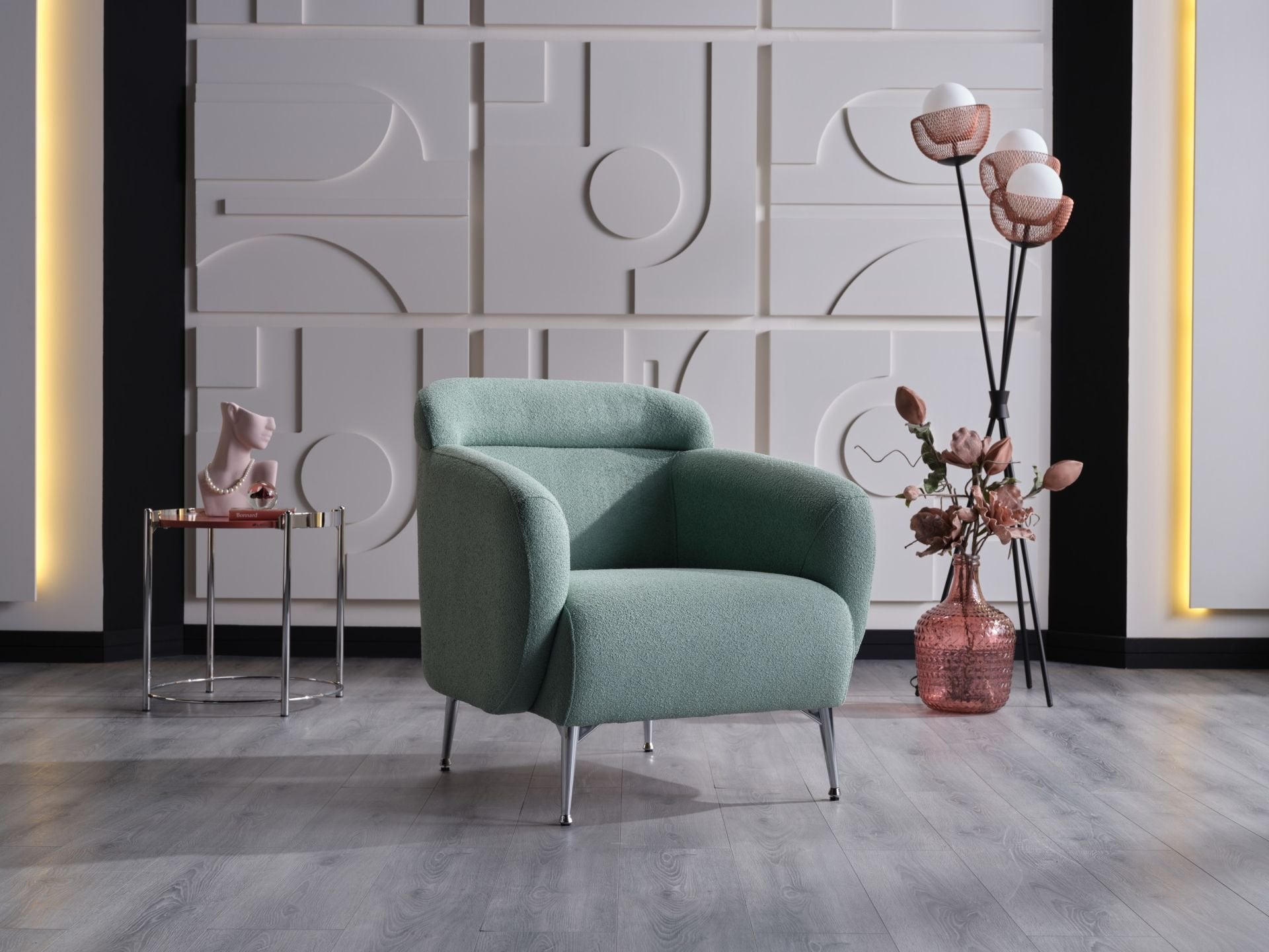The Lenor Armchair is a statement piece, combining both comfort and style. Its design is a blend of contemporary aesthetics with a touch of classic charm, making it a versatile addition to any living space.The Lenor Armchair is more than just a seating solution; it's a blend of art and functionality. Whether placed in a living room, bedroom, or study, it promises to elevate the aesthetics of the space while providing unmatched comfort.